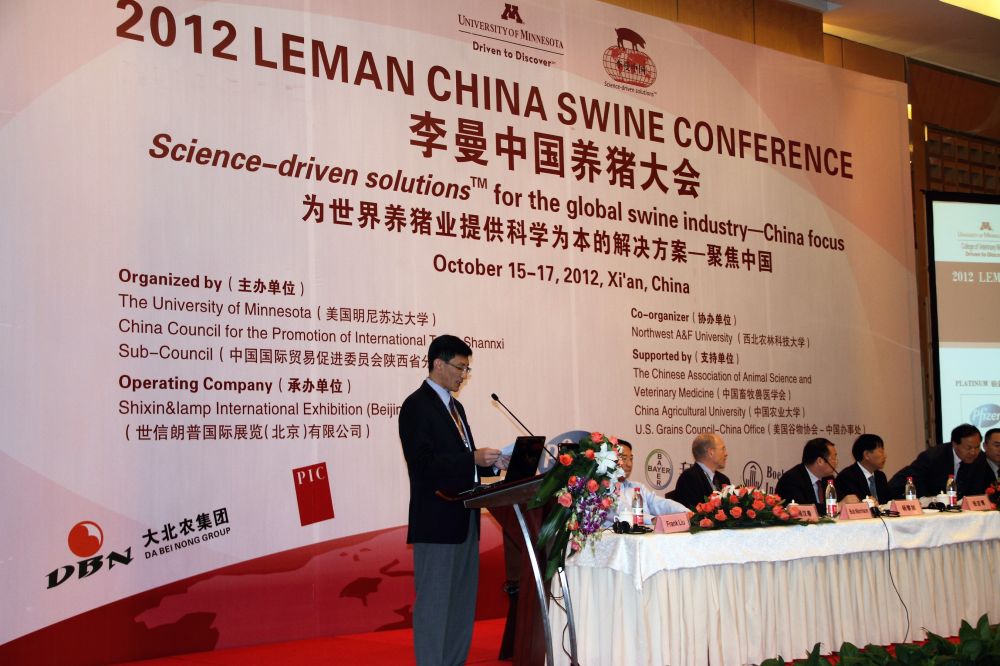 2012李曼中国养猪大会于10月15-16日在西安索菲特人民大厦成功召开。大会得到了来自中国、中国台湾、美国、加拿大、菲律宾、越南、泰国、西班牙等数十个国家的行业领军企业、顶尖的养猪专家及业内人士的大力支持,共650多位专家、教授、科研人员、大型制药企业代表、养猪设备制造商、咨询管理人员参会。此外,大会吸引了辉瑞制药、美国金宝、德国拜耳、勃林格殷格翰、杨凌本香、牧原食品、冀中药业、诺华制药、PIC中国、六马科技、齐鲁动保、大北农等数十家行业领军企业纷纷携其最新产品和技术成果进行现场展示。